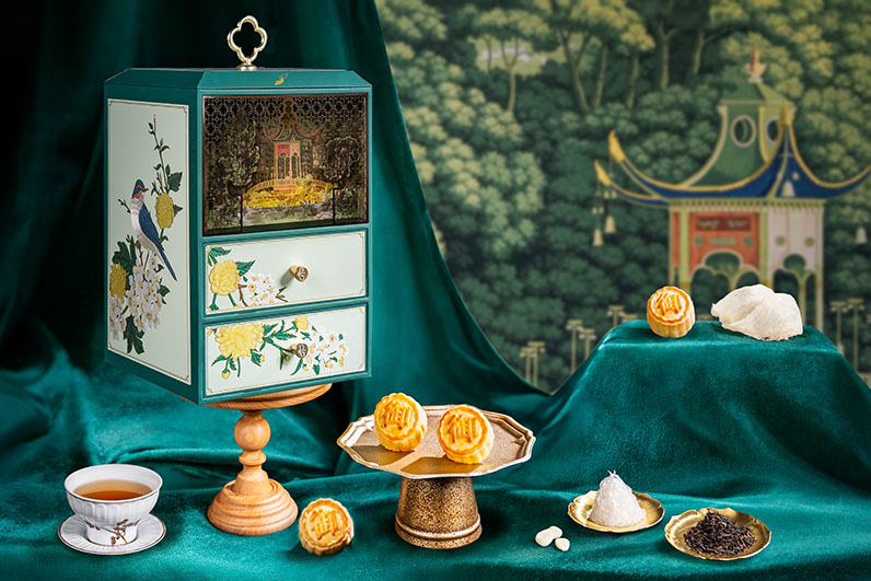 《「御風秋月」禮盒.玉宇樓閣現眼前》「御花園」呈獻限定「御風秋月」中秋禮盒(澳門元 568),靈感取自餐廳「瓊樓玉宇」包廂,重現中國古建之美,亭台樓閣搭配刺繡山水與錦繡花鳥,配合 LED燈效,如輝煌月色映照,格外動人。禮盒內含六枚「御花園」匠心製作的燕液杏汁手工月餅,將珍稀燕窩與香醇杏仁完美融合,搭配荔枝紅茶包,象徵福澤綿長、團圓吉慶。