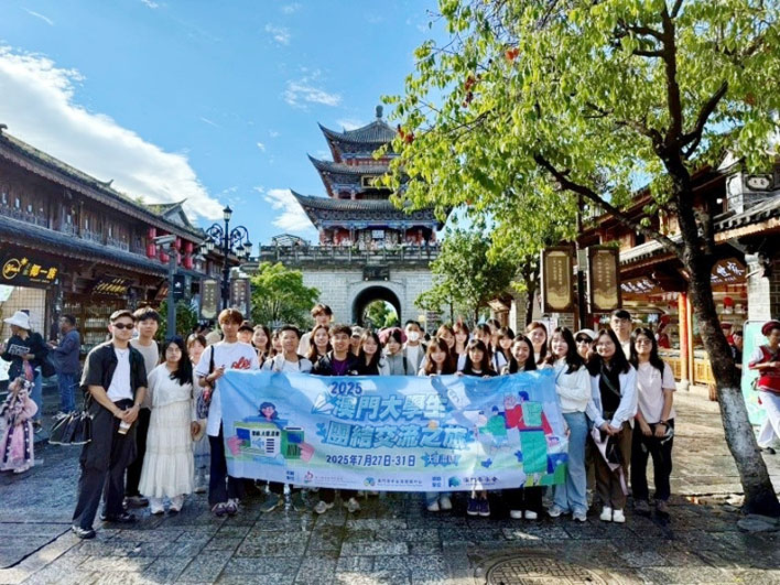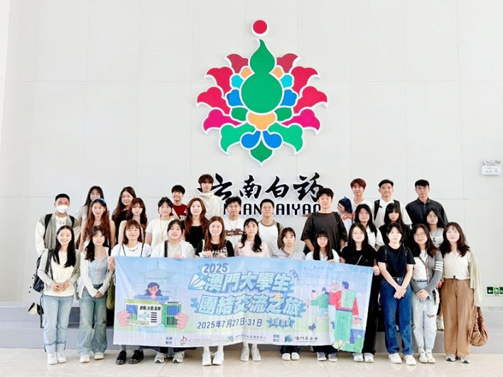 搭建三地橋梁,深化團結情誼:"澳門大學生團結交流之旅"自2008年創辦以來,已成為凝聚澳門、內地及臺灣等地澳門學子的重要平臺。本屆活動選址雲南,旨在讓青年感受祖國邊疆壯麗山河與多元文化,增進情誼,鞏固愛國愛澳力量下的廣泛團結。多元體驗雲嶺文化,感悟民族融合:爲期五天的行程內容豐富多彩。同學們先後參訪了大理古城、雙廊古鎮、喜洲白族古鎮、南詔風情島、官渡古鎮等地,體驗了白族等少數民族的建築、服裝、飲食及國家級非遺紥染技藝。同時,探訪滇池濕地公園、九鄉喀斯特與省博物館,切身感受雲南獨特的自然生態與人文歷史底蘊。