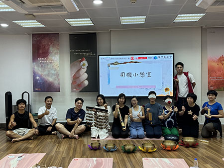 是次「司機小憩室」活動正是針對此需求而設計。活動重點引入了瑜伽練習及音療頌缽體驗。透過專業導師的指導,參與者學習了簡單的瑜伽伸展與呼吸調息技巧,有助紓緩長時間駕駛帶來的身體緊繃與疲勞。隨後進行的音療頌缽環節,則利用缽體產生的深沉共鳴與和諧音頻,引導參與者進入深度放鬆的狀態,洗滌心靈積累的壓力與煩躁,促進身心平衡。