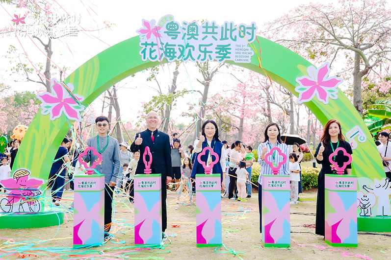 當日下午2時30分,橫琴粵澳深度合作區民生事務局局長馮方丹、副局長蘇凱慈,聯同澳門人樂隊隊長左文軒,澳門青年藝術家黎小傑、盧紹儀共同啟動發條裝置,象徵琴澳文旅合作的齒輪緩緩轉動,同時也標誌著第三屆“粵澳共此時”花海歡樂季正式開幕。