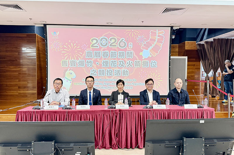 二零二六年農曆新年爆竹、煙花、火箭攤位和神香風車攤位公開競投昨午在沙梨頭活動中心舉行,市政署管委會委員吳秀虹、諮委會委員陳嘉敬、市政署衛生監督廳廳長梁焯文、小販事務處處長劉剛杰出席主持。