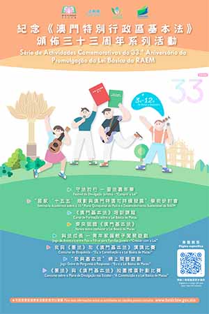 合辦活動還包括:基本法培訓課程、齊來認識《澳門基本法》、與法成長—青年家庭親子闖關遊戲、我與《憲法》和《澳門基本法》演講比賽、“我與基本法”網上問答遊戲、《憲法》與《澳門基本法》校園推廣計劃比賽。詳情可掃瞄下面的二維碼或瀏覽專題網站https://www.basiclaw.gov.mo/Activities/activity33_tc.aspx。