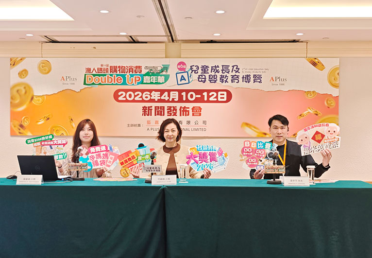 由藝嘉國際有限公司主辦之「第十一屆漁人碼頭購物消費Double Up嘉年華」及「第六屆A+兒童成長及母嬰教育博覽」於今日開幕。主辦單位昨午舉行發佈會介紹展覽詳情。今次雙展以「親子童樂・春日消費新體驗」為核心,匯聚百家本地、香港及台灣的優質展商,設立超過一百五十個展位,提供從兒童教育、母嬰護理到家居生活購物的一站式家庭體驗。展會首日恰逢特區政府「2026社區消費大獎賞」活動啟動,市民於展場消費可同步享受政府電子優惠,疊加展會獨家促銷,共享雙重消費利好。