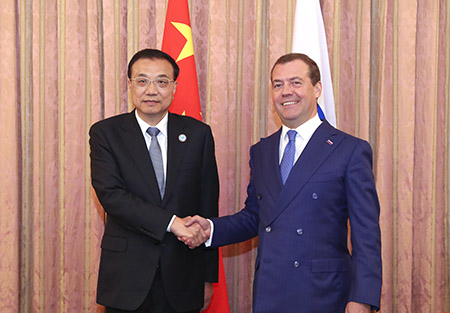 李克強指出,在雙方共同努力下,中俄雙邊經貿合作取得長足發展。在當前國際形勢複雜多變形勢下,中方願同俄方創新合作思路,進一步挖掘合作潛力,拓展能源、科技、金融合作,帶動中俄合作提質昇級。