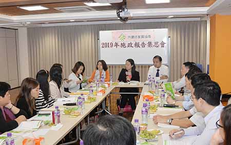 集思會由副理事長兼秘書長岑耀昌主持,理事長黃潔貞在會上發言指出,二○一九年施政報告是行政長官任內的最後一份施政報告,從整體看,本次施政報告惠民措施得到延續且有所優化,家庭政策、婦幼、青年及長者權益等內容也有所表達,但中等收入階層方面的支持未見突破。她在答問大會上跟進財政盈餘的長效機制建設問題,長官則表示明年出台制定財政盈餘長效機制的研究結果,訂定分配的辦法,與市民分享經濟成果。
