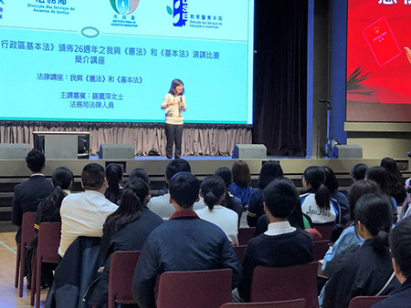 講座首先由法務局法律人員講解《憲法》和《基本法》如何與生活息息相關,隨後演講嘉賓吳毅豪先生向參賽者示範如何在演講中將法律與自身聯繫,並透過聲音及肢體動作感動觀眾及傳遞訊息,最後由承辦單位澳門我是演講家協會創會會長黎俊文先生以風趣幽默及生動活潑的形式分享演講的樂趣及重要性。參賽者聽得入神,從中感受到演講的魅力,獲益匪淺。