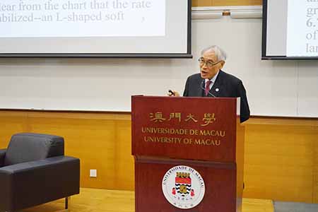 澳大校長宋永華致辭時表示,劉遵義教授是這次講座的最佳人選,追溯至一九七九年,當中國剛開始實行經濟改革並對外開放,他以美國經濟學會代表團成員的身份參訪中國,該代表團與中國當時的經濟決策者們進行了交流,之後他便不斷為中國最高層的經濟決策者們提供意見。劉遵義專研經濟發展和經濟增長,以及包括中國在內的東亞經濟。最早的中國經濟計量模型由他於一九六六年建立,自此他更不斷將之加以改良。
