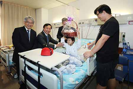 探訪期間,譚俊榮還向住院兒童轉達行政長官崔世安和特區政府的關心和慰問,勉勵兒童及其家屬戰勝困難,祝願小朋友早日康復。母親會代表江陽副理事長和蘇凱倫理事等人帶上節日禮物,澳門義務青年會及兩家庭醫院的工作人員分別為該院兒童舉行聯歡會。