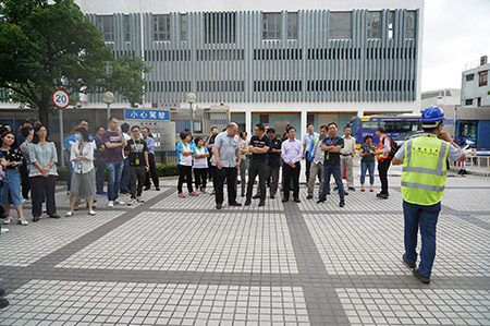 是次演習模擬青洲水廠行政大樓二樓一電源延長線過熱起火,火勢有漫延的跡象。危機處理機制隨即啟動,將火警定性為第二級,並通報消防局及其他相關部門;同步火警鐘響起,職員立即放下手上工作,沿逃生通道有序迅速地疏散到「緊急集合點」,大樓內各層的疏散協調員在安全的前提下檢查樓層,確保員工已安全疏散。總括來說,演習達預期效果,職安健小組後續會進行檢討工作,持續提升公司的整體應變能力。