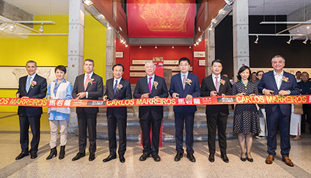 【特訊】由文化局主辦的“喜紅艦-馬若龍作品展”於昨日(星期五)晚上6時45分在塔石藝文館揭幕,由全國政協副主席何厚鏵、澳門特別行政區政府社會文化司司長譚俊榮、中央人民政府駐澳門特別行政區聯絡辦公室宣傳文化部部長萬速成、葡萄牙駐澳門總領事館總領事歐冠溢、澳區全國人大代表何敬麟、澳門特別行政區立法會議員梁安琪、澳門特別行政區政府文化局局長穆欣欣、澳門土生國際聯誼會理事會主席歐安利及藝術家馬若龍主禮,場面熱鬧。展覽展至2020年2月13日,歡迎公眾在展覽期間到場參觀。