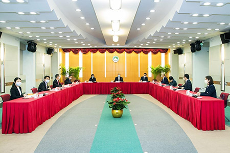 賀一誠感謝民建聯積極建言獻策,並就檢視博彩業的社會責任、投資基金、公共行政改革、醫療衛生、住屋問題、扶持中小微企及民生物價穩定等問題一一作出回應及交流,亦表示政府將推出的百億抗疫專項基金,會充分考慮照顧受疫情影響而在生活或經營上有困難的居民、企業商戶及自僱人士,但需經立法會審議等既定的法律程序才能推出,現時政府全力做好相關準備工作。
