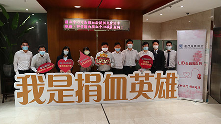 2020年6月5日,澳門國際銀行舉辦第26届“LIB全員捐血日”活動。上午9:30開始,參加捐血活動的員工有序到達捐血中心,自覺進行體溫測量、填表登記、檢測血壓、抽血化驗、排隊捐血,所有流程在醫護人員的指導下井然有序地進行。