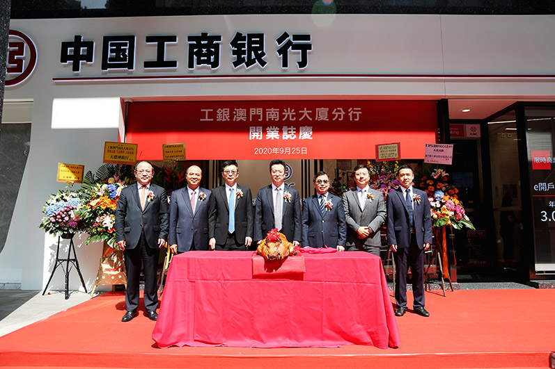 【特訊】為貫徹「立足澳門、服務澳門」的宗旨,繼續以客戶為中心、市場為導向,提供更優質、專業的多元化金融服務,中國工商銀行(澳門)股份有限公司(下稱工銀澳門)「南光大廈分行」於九月二十五日正式開幕,為工銀澳門開設的第20家分行,澳門中國企業協會理事長王瑋、南光集團常務董事及總會計師彭晉鴻、澳門中國企業協會秘書長王軼、中國人壽保險(海外)股份有限公司澳門分公司總經理周士軍、中國太平保險(澳門)股份有限公司總經理宮峰元、工銀澳門董事長姜壹盛、行政總裁徐克恩等嘉賓出席開幕儀式。