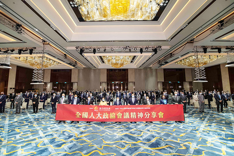 【特訊】銀河娛樂集團積極推動旗下團隊成員了解國情,透過舉辦多元化的活動,助其深入了解國家的概況及最新發展形勢。適逢十三屆全國人民代表大會四次會議及中國人民政治協商會議十三屆全國委員會四次會議早前在北京圓滿閉幕,銀娛日前於「澳門銀河™」澳門 JW 萬豪酒店宴會廳舉辦「全國人大政協會議精神分享會」,並邀請到全國人大代表高開賢;全國政協委員賀定一;以及全國政協委員、銀娛副主席呂耀東就今年中國共產黨成立 100 周年以及「十四五」開局之年所召開的兩會情況,向銀娛管理層成員傳達意義重大的「兩會」精神。是次分享會亦邀請到中央人民政府駐澳門特別行政區聯絡辦公室經濟部副部長左祥華出席指導。參加是次分享會有不同地區的銀娛管理層成員 200 人,包括銀娛顧問華年達、董事程裕昇、財務總裁戴力弘、人力資源及行政集團董事呂慧玲、首席營運總監 — 澳門祁嘉杰等,以及旗下嘉華建材的管理層成員,分別以現場及線上方式參與。