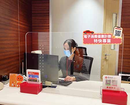 為便利市民,澳門中銀手機銀行將於登記期開始時,設有線上登記電子消費計劃的連結,屆時逾40萬手機銀行用戶可直接跳轉至金管局網站進行登記。另外為照顧長者及未成年人,澳門中銀全線支行網點將提供協助市民登記服務及消費卡充值服務,其中29間支行網點更將提供專窗為市民(包括未成年人)提供授權身份認證的確認工作,以便將政府優惠轉移至被授權人的澳門中銀手機銀行賬戶。