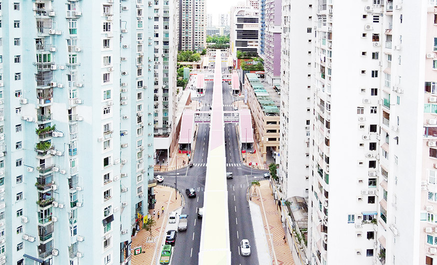 「空中走廊」工程已於本月初竣工,完成驗收後將交由管理部門安排開放使用,藉此分隔人車,便利區內居民出行。市民日後可利用「空中走廊」前往基馬拉斯大馬路沿途及周邊的住宅群、社會設施、公園、學校、體育場館及輕軌站等,還可以更加便捷及安全地前往氹仔舊城區及路氹城一帶。