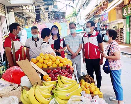 【特訊】早前,本澳再出現確診新冠病毒個案,當局將連勝馬路及義字街部分區域列為封控區,不少居民需要隔離;並於本月十八日起開始解封。立法議員李靜儀和梁孫旭、工聯副理事長江銳輝以及澳門市販互助會理事長柯清煌等人前往義字街了解受影響小販及居民的情況。