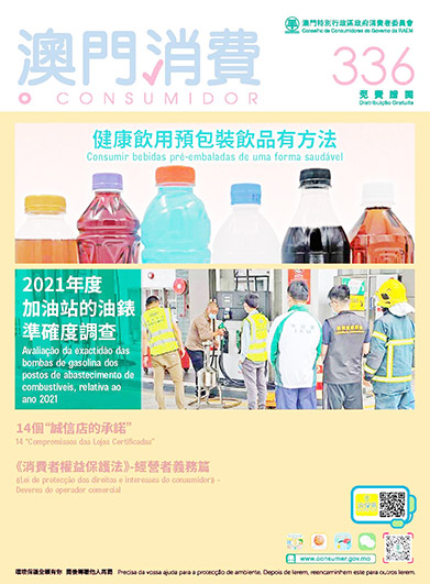 這次的預包裝飲品抽查報告及“消費提示”刊登於新一期的第336期《澳門消費》。
