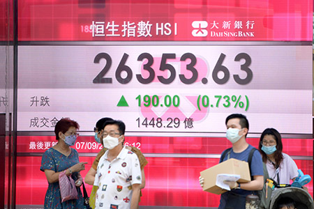 【香港中通社9月7日電】(記者 王姝)香港股市造好,恒生指數連升兩日,衝上三周高位。恒指7日收報26353點,升190點,大市全日成交1448.29億港元。