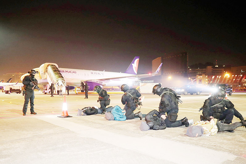 【特訊】澳門國際機場於昨晨進行了「非法劫持航機演習」,模擬一架來澳的外地註冊航機被武裝組織騎劫,劫機者要求特區政府釋放在澳被囚領袖和提交贖金。澳門國際機場緊急應變中心啟動應急工作,最後成功救出乘客和機組人員,過程順利。