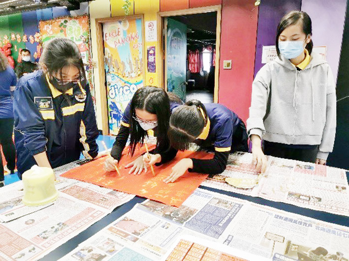澳門少年飛鷹會招募了20多名飛鷹隊員聚首一堂,於飛鷹中心傳承中華文化傳統習俗,寫揮春增添農曆新年的色彩,並弘揚中國哲學思想及中華文化。隊員持之以恆,勤練毛筆書法,除了改善書寫問題外,還有利於日常生活所需,更能培養隊員的耐性和持久力,讓隊員心神平靜,提高品德情意。並期望新一年虎虎生威,新冠疫情盡早結束,萬事大吉。