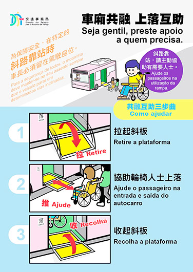 【特訊】為進一步確保巴士行車安全,交通事務局經與交通諮詢委員會進行討論,並聽取傷健人士團體之意見,2月28日(周一)起於29個設於斜路之巴士站點試行巴士停靠的特別安排:倘有輪椅人士需於相關巴士站點上落車時,容許巴士車長留在駕駛座確保巴士安全而毋需前往協助,同時鼓勵其他乘客或路人主動協助輪椅人士上落車,發揮「車廂共融 上落互助」精神。