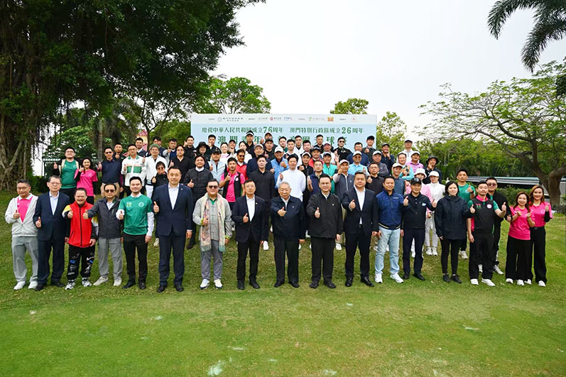 【特訊】澳門中華總商會青年委員會於昨(4)日上午十一時三十分假路環澳門高爾夫球鄉村俱樂部舉行「慶祝中華人民共和國成立七十六周年、澳門特別行政區成立二十六周年——澳門青年慈善高爾夫球賽」,共六十人參賽。中總會長崔世昌,理事長馬志毅,副理事長莫志偉、馬志達,銀河娛樂集團企業事務董事林志成,中國銀行澳門分行營業中心聯席總經理顏奕恆,澳門電訊股份有限公司網絡服務及拓展總監盧杰俊,中總青委會主任崔天立,澳門南安商會永遠會長黃天松擔任開球禮的主禮嘉賓。Close