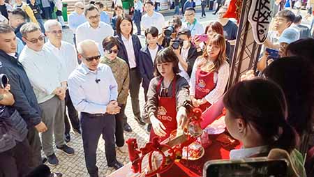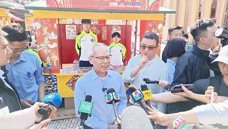 昨日年廿九(大除夕),行政長官岑浩輝於昨日下午二時三十分,到塔石廣場參觀年宵市場,以及前往氹仔爆竹燃放區參觀;岑浩輝在行政法務司司長黃少澤,市政署管委會主席周偉迎等陪同下,到多個花檔及精品視察,岑浩輝向花檔檔主了解的經營情況,又向檔主了解花卉來源地等,檔主回答今年生意好,岑浩輝又到銷售賀年精品的檔位,與一眾年青檔主交流,場面相當熱鬧。