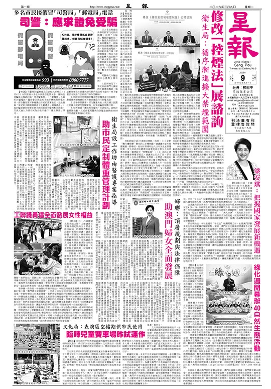 【特訊】特區政府貫徹落實《健康澳門藍圖》中降低煙草使用率的目標,以立法、執法、教育宣傳及鼓勵戒煙等多管齊下策略執行各項控煙政策和措施。衛生局於昨日(8)日舉行首場修改《預防及控制吸煙制度》(以下簡稱《控煙法》)公眾諮詢會,約80名來自工商、旅遊、教育等界別代表出席。衛生局代局長鄭成業、防控煙酒辦公室主任林松、衛生局法律辦公室協調員夏利樂跟與會代表進行了互動交流及聽取意見,普遍支持是次修法方向。