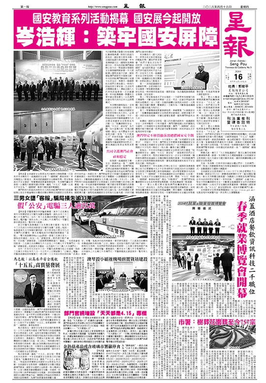 全民國家安全教育展於今(16)日下午3時全面開放予公眾參觀,展期至5月15日。展覽透過精煉的文字、逾360幅紀實圖片、影片及多媒體互動裝置,為觀展人士重點呈現澳門特區在中央政府的堅定領導下,牢牢把握“一國兩制”正確方向,堅定不移統籌發展和安全,不斷健全維護國家安全的法律制度和執行機制,以高水平安全護航高質量發展,積極融入國家發展大局,為“十五五”新征程開好局、起好步貢獻澳門力量。