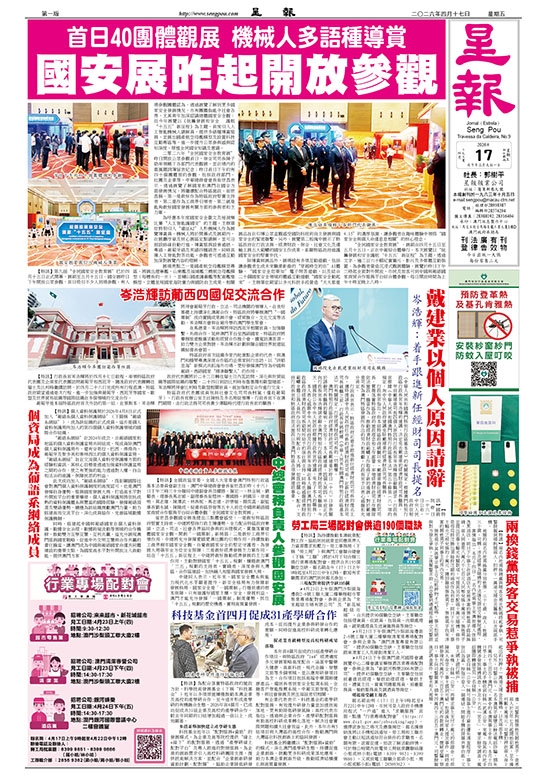岑浩輝致辭時指出,全民國家安全教育是一項系統性、長期性工作,推動全民國家安全教育常態化和大眾化,必須與時俱進、守正創新。今年,特區政府與中聯辦連續第九年合辦全民國家安全教育系列活動,以“統籌發展和安全 護航‘十五五’新征程”為主題,加大宣傳力度,拓寬活動規模,推出一系列豐富多元的宣教活動,呈現“天天都是4.15”的長效氛圍,通過沉浸式體驗、互動式參與、大眾化傳播等多種喜聞樂見的形式,讓本澳國安教育走得更深更實。
