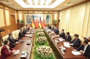 習近平指出,中國和德國分別是世界第二、第三大經濟體,中德關係不僅關乎兩國利益,也對歐洲和世界有重要輻射效應。當前國際形勢正在經歷第二次世界大戰結束以來最深刻演變。世界越是變亂交織,中德兩國越要加強戰略溝通、增進戰略互信,推動中德全方位戰略夥伴關係不斷得到新發展。