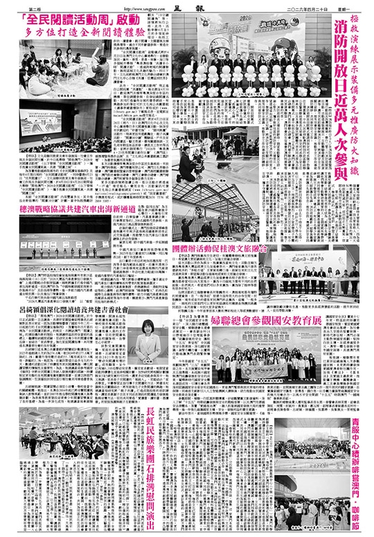 【特訊】消防局於昨日(十九)在消防局總部暨西灣湖行動站及西灣湖廣場,舉行二零二六消防局開放日活動。活動透過裝備展示、互動體驗遊戲及拯救演練等,讓市民近距離暸解消防工作,將消防安全工作關口前移,提升社會安全意識,推動安全工作向事前預防轉移,共同做好防火工作。