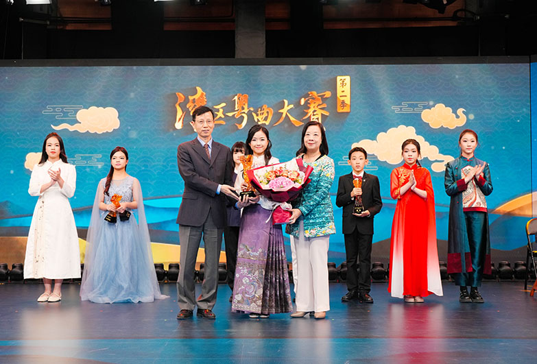 出席頒獎禮的嘉賓,包括中央政府駐澳門聯絡辦公室宣傳文體部副部長殷汝濤,澳廣視執行委員會主席羅崇雯,文化局演藝發展廳廳長郭妙瑜,澳廣視執行委員會委員袁泳貴,中國戲劇曲藝家(澳門)聯誼會會長仇坤儀、副理事李曼瑜,澳門大龍鳳曲藝會會長陳慕蓮,以及澳廣視節目及製作部、傳訊事務部總監何振明,工程及創科技部總監孫浩,節目及製作部副總監楊成。多位本澳及灣區的粵曲名家評審親臨現場,包括中國戲劇梅花獎得主、原廣東省戲劇家協會主席、廣東粵劇促進會會長倪惠英,中國戲劇梅花獎得主、原廣東粵劇院副院長、中國文化部優秀專家曹秀琴,香港演藝學院榮譽博士、香港中文大學音樂系副教授、資深粵劇表演藝術家阮兆輝,香港八和會館現屆理事、香港著名粵劇名伶鄭詠梅,國家二級演員、廣東粵劇蝦腔藝術研究會名譽會長、澳門資深粵劇表演藝術家羅赤峰,為參賽者的演出進行評分及指導;頒獎禮更特邀粵劇名伶曾慧老師,聯同上屆學生組冠軍陸茵與宗樂瑤,演出粵劇經典選段《白龍關•水漫金山》,彰顯粵曲藝術的魅力。