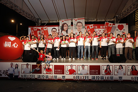 第16組同心協進會在花城公園舉行造勢晚會,第2候選人梁孫旭表示,同心團隊關注職工面對的各種生活問題,所屬團體不但長期為居民提供所需的醫療、長者和托兒服務,更會推動政府完善養老保障政策,繼續爭取強制性中央公積金制度的建立;要求政府加大社保基金的資源投入,提升居民的養老保障水平。他敦促政府切實改善醫療服務,縮短求診的輪候時間,要求以「醫療儲蓄卡」代替「醫療券」,方便市民。加強醫護康復服務,善用社區資源,建立醫護服務網路。建立健全家庭照顧服務機制,為雙職及輪班工作家庭提供適切的支援,增加托兒及養老服務名額。