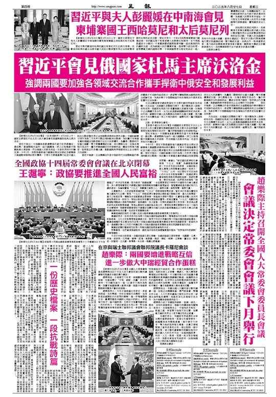 西哈莫尼和莫尼列表示,很高興再次來華並應邀出席中國人民抗日戰爭暨世界反法西斯戰爭勝利80周年紀念活動,中國人民為維護世界和平作出重大貢獻,值得永遠銘記。習近平主席4月對柬埔寨進行歷史性國事訪問,雙方暢敘友誼、共商合作,取得重要成果。柬方始終從戰略高度看待柬中關係,願將柬中傳統友好關係發揚光大,共同構建新時代全天候柬中命運共同體。