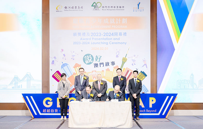 【特訊】銀河娛樂集團(下稱「銀娛」)一直積極配合澳門特別行政區政府(下稱「特區政府」)「教育興澳、人才建澳」的施政方針,多年來透過不同舉措,助力本澳青少年實現個人成長及全面發展。自2011年起,銀娛連續12年聯同澳門管理專業協會(下稱「管協」)合辦「銀娛青少年成就計劃」(下稱「『成就計劃』」),至今已為近3,500名18至29歲本地青少年學員提供一系列豐富多元的活動及培訓機會。為表揚一眾學員過去一年的傑出表現及分享學習成果,並為新一屆「成就計劃」進行揭幕,今日,銀娛於銀河國際會議中心舉行第12屆頒獎禮暨第13屆開幕禮,並與管協簽署未來3年的合作協議,攜手推動本地青年人才培育及發展。