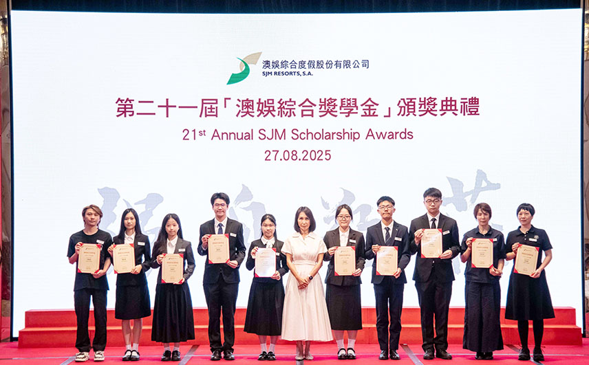 【特訊】澳娛綜合度假股份有限公司(「澳娛綜合」)昨天於新葡京酒店宴會廳舉行第二十一屆「澳娛綜合獎學金」頒獎典禮,向 36 名優秀的員工子女合共頒發獎學金澳門元 73 萬。澳娛綜合常務董事何超鳳女士、澳娛綜合董事兼員工福利諮詢委員會主席梁安琪女士、澳娛綜合秘書長官樂怡大律師及澳娛綜合首席企業事務總監沈銘義先生等出席,與家長一同見證得獎學生的喜悅,場面溫馨熱鬧。