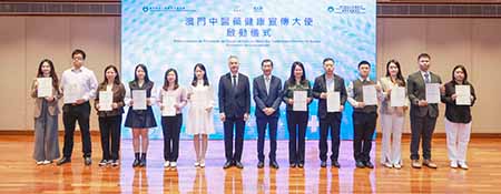 為表揚過去一年表現突出的宣傳大使,鄭成業及李世恩向12位“2024-2025年度優秀中醫健康宣傳大使”頒發嘉許狀,肯定其在中醫藥文化推廣工作中的貢獻。隨後,舉行了第一次工作會議,由衛生局及藥物監督管理局代表介紹宣傳大使的職責使命、工作要求;宣傳大使組長則主持小組討論並聽取意見,為未來工作方向及目標凝聚共識,更好地聯動民間力量,使中醫藥養生保健、治病防病及用藥安全等健康文化更深入且廣泛地惠及全社會,從而強化中醫藥在公共衛生體系中的作用,更好地助力大健康產業發展,提升居民健康水平,共同實現“幸福澳門”施政願景。