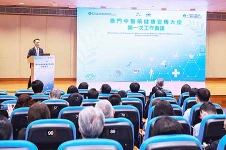 【特訊】國家在“十五五”規劃綱要中提出要提升中國在國際的文化影響力,推動中醫藥傳承與現代化創新,特區政府積極對接國家發展戰略,透過“健康社區”計劃持續開展多元化社區健康科普活動,傳承與弘揚優秀中醫藥文化,致力提升居民健康素養與自我健康管理能力。日前,衛生局與藥物監督管理局舉行“澳門中醫藥健康宣傳大使”啟動儀式及第一次工作會議,凝聚本澳中醫藥界專業力量,攜手推廣中醫藥健康文化。中央人民政府駐澳門特別行政區聯絡辦公室代表、本澳29個社團及醫療機構代表、新一屆宣傳大使等近150人出席了啟動儀式,場面熱烈。
