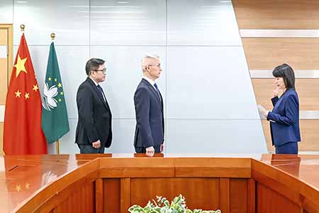 【特訊】第6/2026號行政法規《財政局的組織及運作》於三月廿四日正式生效,標誌着財政局正式完成架構重組。透過是次重組,特區政府對財政局的組織架構與人員編制進行精簡與優化,理順職能分工,旨在提升財政治理、強化行政效能,並為財稅法律的有效執行提供更穩健的制度保障。在經濟財政司司長戴建業監誓、經濟財政司司長辦公室主任羅志輝見證下,財政局局長何燕梅及副局長郭日海亦於廿六日重新宣誓就職。