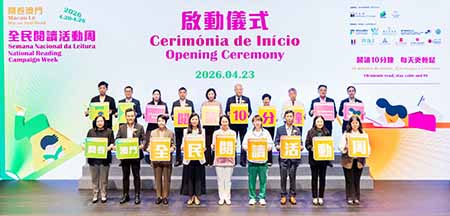 【特訊】為積極響應國家《全民閱讀促進條例》將每年4月第四周定為“全民閱讀活動周”,以及4月23日“世界閱讀日”,由文化局、教育及青年發展局及社會工作局主辦,聯同多個政府部門及民間社團共同舉辦的“開卷澳門‧2026全民閱讀活動周”(以下簡稱“全民閱讀活動周”)於昨日(4月23日)在澳門文化中心小劇院舉行活動啟動儀式。活動以“閱讀10分鐘,每天更輕鬆”為口號,透過豐富多樣的閱讀推廣活動,鼓勵市民將閱讀融入日常,共建書香滿溢的文化澳門。