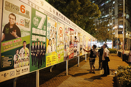 立法會選舉管理委員會主席唐曉峰表示,宣傳期整體情況基本良好,但仍發現有個別候選名單涉嫌存在違法的情況,治安警察局過去數天盡量採取勸籲、警告方式處理,今日起將會對違規行為嚴厲執法。唐曉峰表示,至今發現的違規情況,主要是在不適當的位置擺放宣傳品,他呼籲候選名單張貼宣傳品時,必須按照選管會規定,僅可在選管會所指的位置張貼,街上活動不可放置易拉架或海報等。
