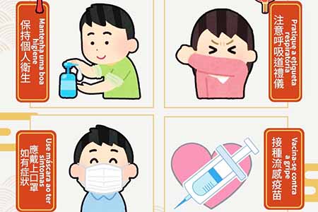 預防呼吸道感染:新春期間聚會頻繁,建議居民保持個人衛生,經常用鹼液洗手;咳嗽或打噴嚏時應用紙巾或肘部遮掩口鼻;如有不適應戴上口罩,以減低感染呼吸道傳染病風險。