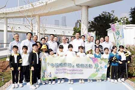 【特訊】為響應3月12日中國植樹節,市政署於南岸海濱綠廊舉辦植樹活動,行政法務司司長黃少澤、司長辦公室主任曾翔、市政署市政管理委員會主席周偉迎、市政諮詢委員會主席許樂敏等嘉賓聯同近60名師生,一起種植苗木以美化澳門海岸,共同倡導“愛綠、植綠、護綠”的理念。周偉迎表示,南岸海濱綠廊二期的二區預料短期內將會開放,區內以單車徑、跑步徑及綠化為主,現時工程已進入最後收尾階段。