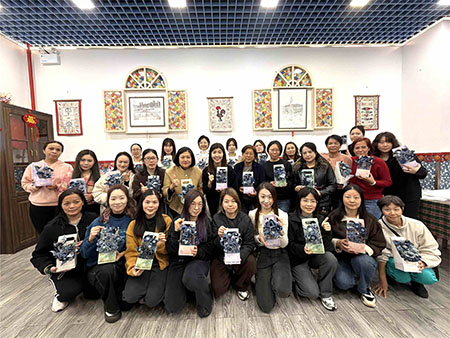 【特訊】本月5日澳門公共汽車股份有限公司組織27名員工前往本會轄下寶翠中心,參與「褲」予新生命—丹寧再生手提籃工作坊。本會總幹事周惠儀女士亦到場與參加者合照留念,共慶三八婦女節。參加者親手製作出一件件獨一無二的牛仔布花手提籃,作為送給自己最好的女神節禮物。活動期間,員工們更參觀寶翠中心,深入了解中心的職業訓練項目。