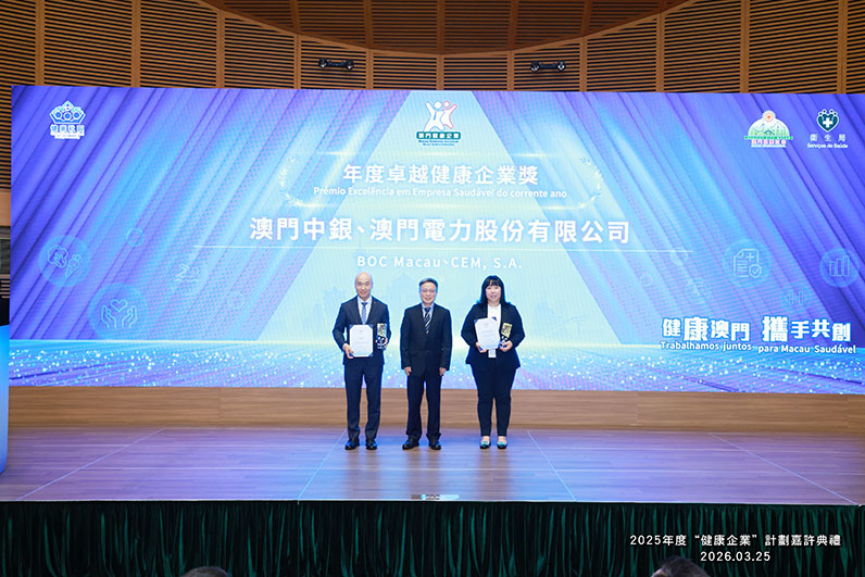 【特訊】“2025年度健康企業計劃嘉許典禮”於3月25日圓滿舉行,澳門中銀榮獲2025年“年度卓越健康企業奬”及“健康企業奬”兩項殊榮,是唯一獲得“年度卓越健康企業奬”的金融機構。