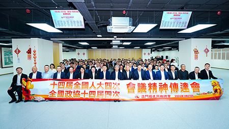 陳明金在傳達兩會精神時,重點闡述了今年兩會報告及“十五五”規劃為澳門與福建帶來的新發展機遇。他強調,澳門要發展經濟適度多元,福建也承擔著“高質量建設兩岸融合發展示範區”及深入推進“21世紀海上絲綢之路核心區”建設的重要使命,閩澳兩地優勢互補性強,應在新階段“並船出海”,將國家戰略紅利轉化為協同發展的強大動力。他提到,澳門需擔當好國家與葡語、西語國家合作的“精準聯繫人”,為有意“出海”的福建企業提供一站式服務。澳門中小企業可借鑑“晉江經驗”,走“專精特新”發展道路,在餐飲、零售、會展、文化創意、傳統手工藝等自身擅長領域精耕細作,透過科技創新與數字化轉型升級。