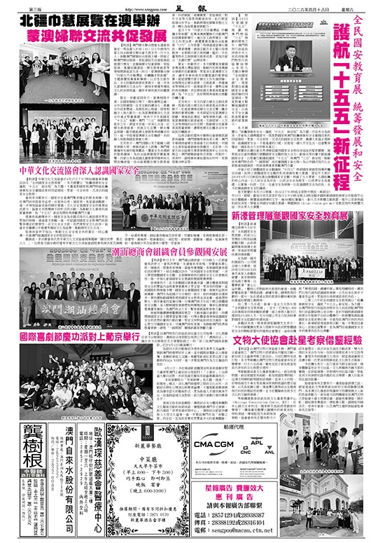 【特訊】中華文化交流協會於4月17日下午7時組織會員參觀2026年“全民國家安全教育展”。本次展覽以“統籌發展和安全 護航‘十五五’新征程”為主題,不僅是對國家與澳門特區統籌發展和安全實踐成果的回望總結,更是一次全民性、沉浸式的國家安全教育。