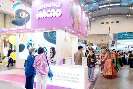 旅遊局於今年1月22至25日在泰國曼谷舉行之“第31屆泰國國際旅遊展”(TITF 2026),安排澳門旅遊吉祥物“麥麥”與泰國人氣IP“Warbie Yama”兩度合作,並透過色彩繽紛的展位設計,結合澳門熱門景點打卡裝置、互動遊戲、環保袋工作坊、舞蹈表演及特色美食區等,展現澳門“旅遊+文化、美食與盛事”的多元魅力;期間更特別安排“麥麥”與“Warbie Yama”同台演出,帶動現場氣氛。澳門展位在四天展期吸引約2.4萬人次參觀。
